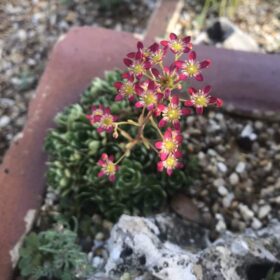 With burgundy flowers and soft haired foliage this variety is compact and ideal for the Alpine rock garden or container. Its habit remains very neat whilst in foliage and produces flowers from mid Spring to mid Summer.